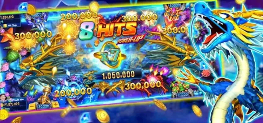 Khi đủ 3 rồng xuất hiện trong cùng một trận (bất kể bạn có hạ được hay không), hệ thống sẽ tự động kích hoạt chế độ Vùng Long Tài – toàn bộ màn hình đổi nền đỏ, cá quý và xu bay khắp nơi. Trong 20 giây, lượng cá xuất hiện tăng 3 lần, tỷ lệ cá xu và cá đặc biệt tăng 200%. Đây là thời điểm lý tưởng để “gom lộc”, với mức thưởng có thể lên đến 2.5 triệu xu nếu biết tận dụng đạn hợp lý.