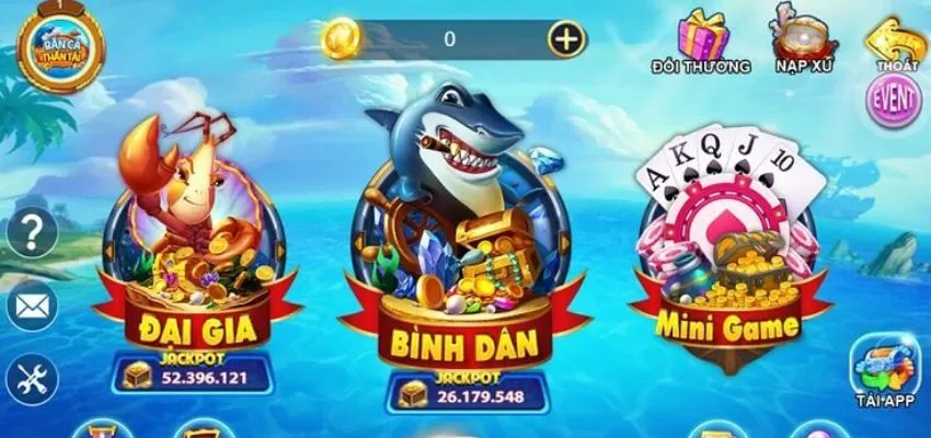Bắn Cá Thần Tài là trò chơi bắn cá đổi thưởng hấp dẫn lấy cảm hứng từ thế giới đại dương sôi động với hàng trăm loài sinh vật biển, cá vàng, cá thần tài và boss khủng. Với đồ họa 3D bắt mắt, hiệu ứng sắc nét và âm thanh sống động, trò chơi mang đến trải nghiệm giải trí chân thực, sôi động cùng cơ hội săn thưởng lớn.